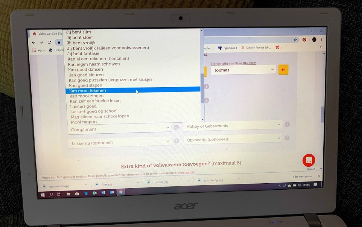 Heb je informatie van iemand anders nodig, zoals ik in dit geval van mijn zusje, over haar jongens, verzamel dat van te voren. Als je begint met het maken van het bericht van Sint, heb je alles bij de hand. Ook als je zelf geen goede foto’s hebt van bijvoorbeeld je neefjes en nichtjes, regel die dan bij hun ouders.